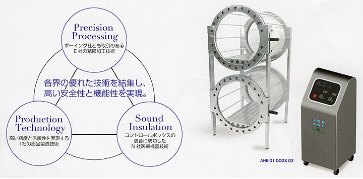 DOGS O2はペット専用酸素カプセルです。ペットを入れるだけで、エアロビクス効果が得られます。 縦型コントロールボックスで酸素カプセル2台を稼動するコンパクト構造で、設置場所を選びません。カプセルは1台、2台のセッティングも可能で、サイズはS、M、Lの3タイプからお選びいただけます。